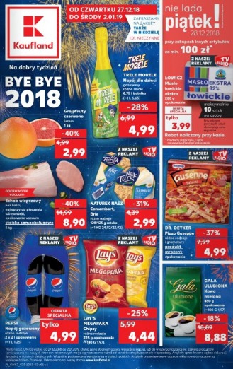 Oferta ważna od czwartku 27.12.2018 do środy 2.01.2019, chyba że na stronach gazetki wskazano inaczej lub do wyczerpania asortymentu. Artykuły promocyjne, ze względu na ograniczoną ilość zapasów, mogą zostać wyprzedane już w pierwszym dniu promocji.