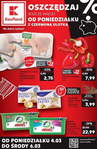 Oferta ważna od poniedziałku 4.03 do środy 6.03, chyba że na stronach gazetki wskazano inaczej lub do wyczerpania asortymentu. Artykuły promocyjne, ze względu na ograniczoną ilość zapasów, mogą zostać wyprzedane już w pierwszym dniu promocji.