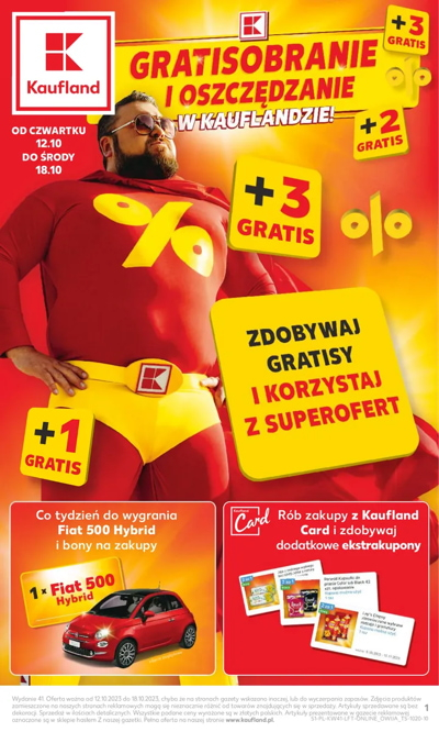 Superakcja Gratisowanie i oszczędzanie, w któej do wygrania co tydzień Fiat 500 Hybrid oraz wiele innych nagród. Ponadto zdobywaj gratisy i korzystaj z superofert na każdych zakupach. Zyskuj jeszcze więcej z Kaufland Card i zdobywaj dodatkowe ekstrakupony.