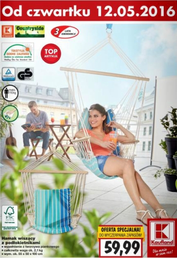 - Hamak wiszący z podłokietnikami – 59,99 zł.