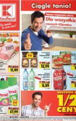 Nowa gazetka promocyjna marketu Kaufland – „Wszystko za 1/2 ceny”.