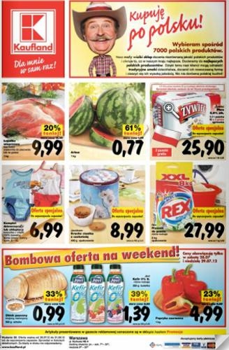 Aktualna gazetka reklamowa marketu Kaufland dostępna już od 26.07.Naszym znakiem rozpoznawczym są prawdziwe świeże produkty najlepszej jakości.Klientów wchodzących do Kauflandu codziennie wita zapach świeżo wypieczonego pieczywa,do stoiska z warzywami przyciagają dorodne owoce i pełne witamin warzywa, a ogromny wybór wędlin zachęca kupujących do wybierania ulubionych smakołyków.