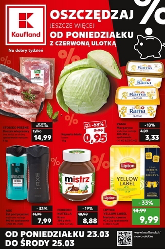 Oferta ważna od poniedzialku 23.03 do środy 25.03, chyba że na stronach gazetki wskazano inaczej lub do wyczerpania asortymentu. Artykuły promocyjne, ze względu na ograniczoną ilość zapasów, mogą zostać wyprzedane już w pierwszym dniu promocji.