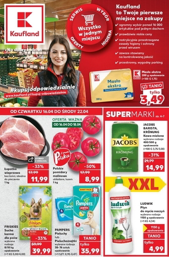 Oferta ważna od czwartku 16.04 do środy 22.04, chyba że na stronach gazetki wskazano inaczej lub do wyczerpania asortymentu. Artykuły promocyjne, ze względu na ograniczoną ilość zapasów, mogą zostać wyprzedane już w pierwszym dniu promocji.
