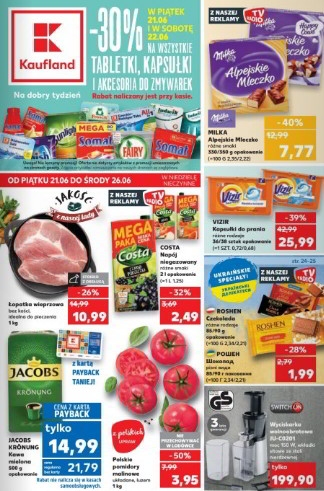 Oferta ważna od piątku 21.06 do środy 26.06, chyba że na stronach gazetki wskazano inaczej lub do wyczerpania asortymentu. Artykuły promocyjne, ze względu na ograniczoną ilość zapasów, mogą zostać wyprzedane już w pierwszym dniu promocji.