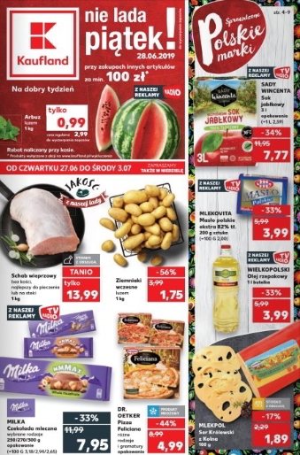 Oferta ważna od czwartku 27.06 do środy 3.07, chyba że na stronach gazetki wskazano inaczej lub do wyczerpania asortymentu. Artykuły promocyjne, ze względu na ograniczoną ilość zapasów, mogą zostać wyprzedane już w pierwszym dniu promocji.