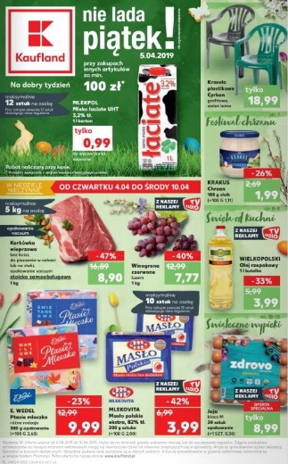 Oferta ważna od czwartku 4.04 do środy 10.04, chyba że na stronach gazetki wskazano inaczej lub do wyczerpania asortymentu. Artykuły promocyjne, ze względu na ograniczoną ilość zapasów, mogą zostać wyprzedane już w pierwszym dniu promocji.