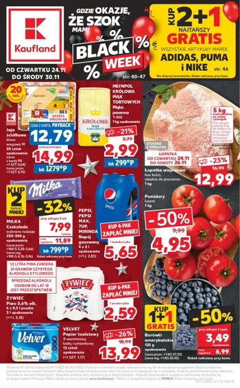 Oferta ważna od środy 24.11 do środy 30.11, chyba że na stronach gazetki wskazano inaczej lub do wyczerpania asortymentu. Artykuły promocyjne, ze względu na ograniczoną ilość zapasów, mogą zostać wyprzedane już w pierwszym dniu promocji.