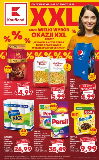 ’Gdzie wielki wybór okazji XXL mam? W Kauflandzie teraz duże opakowania w najlepszych cenach!’ – nowa gazetka promocyjna sieci marketów Kaufland.