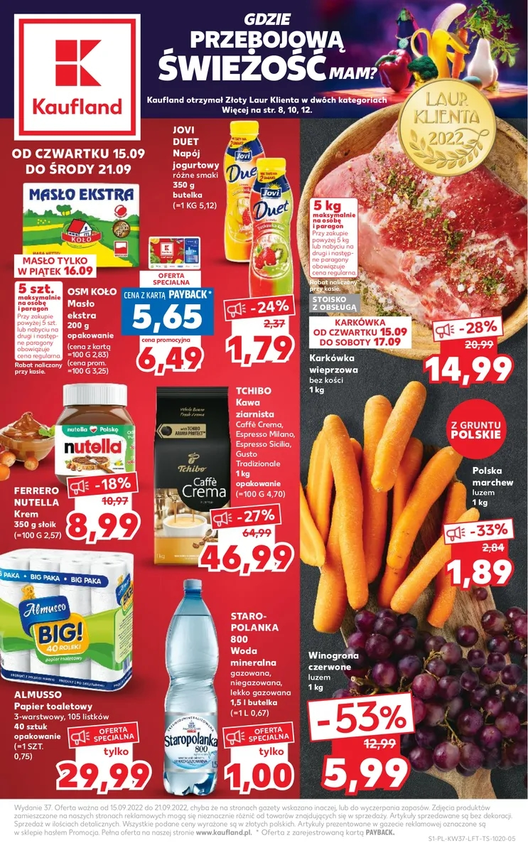 Oferta ważna od czwartku 15.09 do środy 21.09, chyba że na stronach gazetki wskazano inaczej lub do wyczerpania asortymentu. Artykuły promocyjne, ze względu na ograniczoną ilość zapasów, mogą zostać wyprzedane już w pierwszym dniu promocji.