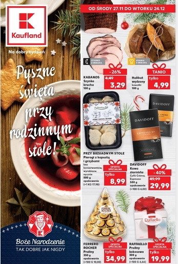 ’Pyszne święta przy rodzinnym stole!’ – nowa gazetka promocyjna sieci marketów Kaufland.