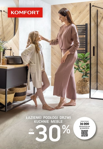 ’Łazienki, podłogi, drzwi, kuchnie i meble do -30%’ – nowa gazetka promocyjna sieci sklepów Komfort.