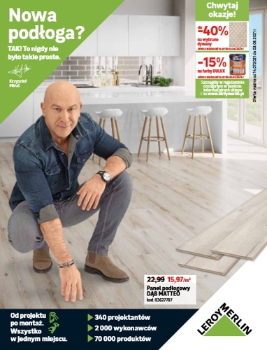 ’Nowa podłoga. Tak! To nigdy nie było tak proste’ – nowa gazetka promocyjna Leroy Merlin.