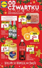 Na następnych stronach gazetki Lidla znajdziemy akcje promocyjne: Dzielimy się wyjątkowym smakiem, Dzielimy się słodką radością, Podaruj słodką przyjemność, Podaruj bliskim wiele słodkości, Na święta drugi produkt 50% taniej, Dzielimy się słodką radością, Mini banany w cenie od Mikołaja, Ryneczek Lidla, Naturalnie na dzień dobry, Chrupiące z pieca, Na święta świeże mięso do 50% taniej, Dzielimy się pomysłem na świąteczny filet z dorsza, Dzielimy się tradycyjnym smakiem świąt, Na świąteczny stół, Pikok Pure 4xBEZ, Jakość na najwyższym poziomie, Na święta wędliny muszą być wyjątkowo smaczne, Pyszna zabawa, SKYR od tysiąca lat ważny element kuchni islandzkiej, Na święta nabiał musi być wyjątkowo smaczny, Na święta nabiał musi być taniej, Olśniewaj urodą z marką Cien, Profesjonalna pielęgnacja włosów Cien, Zrób gotową mieszankę do wypieku ciastek, smakiem podziel się z bliskimi, Alesto kochamy bakalie, Na święta dobry produkt w dobrej cenie, Ulubiona woda dzieci w zimowej szacie, Browarnia Lidla, Do 50% taniej, Dom na świąteczny połysk drugi produkt 50% taniej, Kwiaty tygodnia, Dzielimy się wyjątkowym smakiem oraz O! taniej na święta.