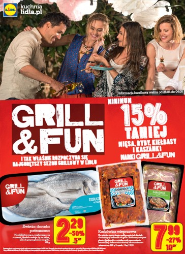 Nowa gazetka promocyjna Lidl – „Grill&Fun i tak właśnie rozpoczyna się najgorętszy sezon grillowy w Lidlu”.