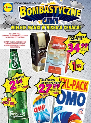 Nowa gazetka promocyjna Lidl – „Bombastyczne ceny – wielkie marki w niskich cenach!”.