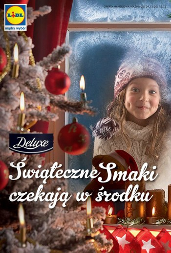 Nowa gazetka promocyjna Lidl – „Świąteczne smaki czekają w środku”.