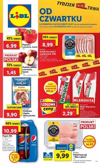 Oferta ważna od czwartku 13.01 do soboty 15.01 lub do wyczerpania asortymentu. W wybranych sklepach do niedzieli 16.01.