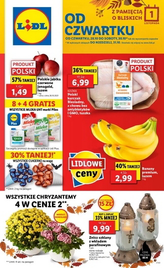 Oferta ważna od czwartku 28.10 do soboty 30.10 lub do wyczerpania asortymentu. W wybranych sklepach oferta obowiązuje do niedzieli 31.10.