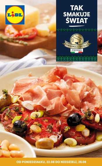 ’Tak smakuje świat Italiamo – nowa gazetka promocyjna sieci sklepów Lidl, a w niej m.in. przysmaki kuchni sycylijskiej, tj. sycylijski makaron z kalafiorem, sycylijski makaron z bakłażanem pasta alla norma, sycylijska pizza sfincione, kulki ryżowe arancini czy włoskie ciasteczka cantuccini.