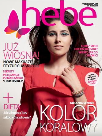 ’Gwiazda sezonu – kolor koralowy’ – kwietniowe wydanie magazynu drogerii Hebe.