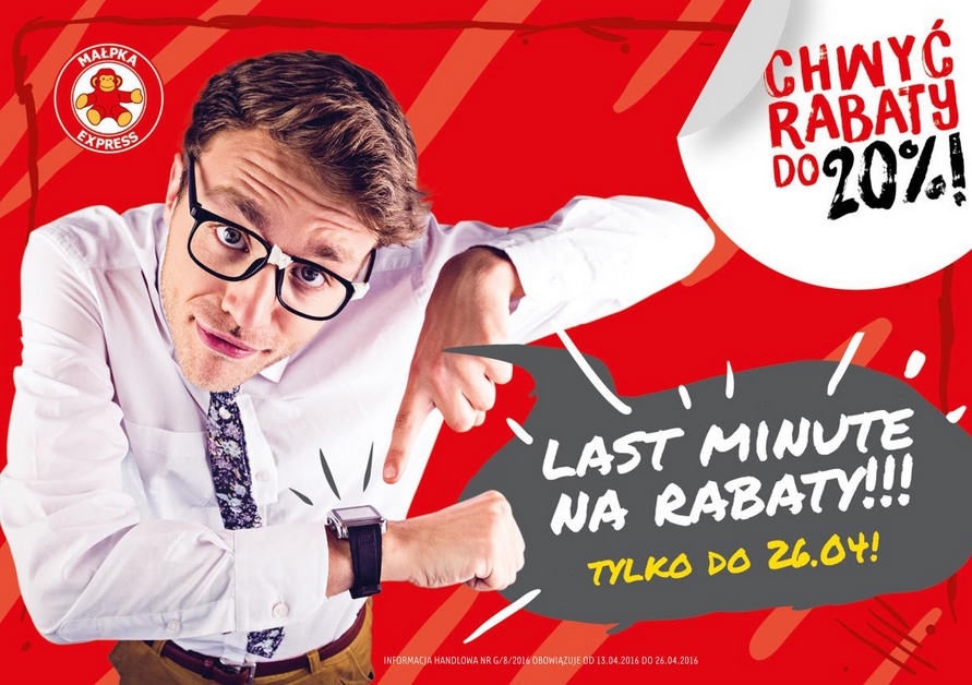 Nowa gazetka promocyjna Małpka Express – „Last Minute na rabaty!!!”.