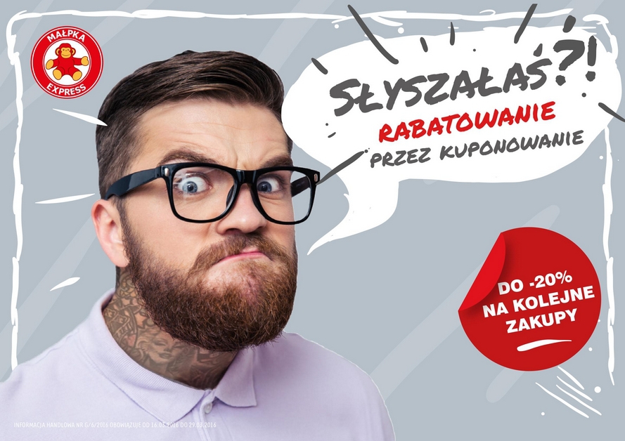 Nowa gazetka promocyjna Małpka Express – „Słyszałaś?! Rabatowanie przez kupowanie”.