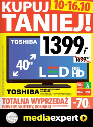 - Telewizor LED 40″ TOSHIBA 40L1333G – 1399 zł.
