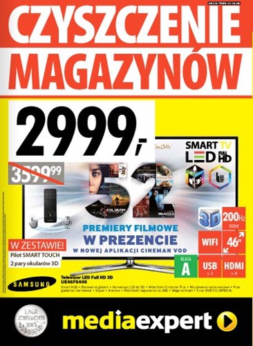- Telewizor LED 3D 46″ SAMSUNG UE46F6400 – 2999 zł.