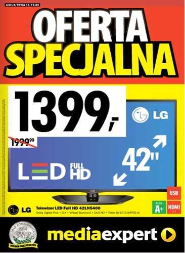 - Telewizor LED 42″ LG 42LN5400 – 1399 zł.