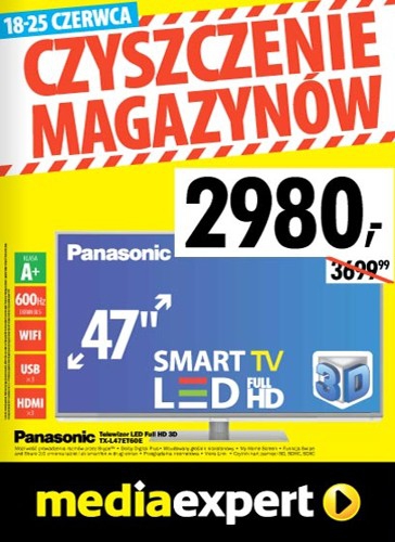 - Telewizor LED 3D 47″ PANASONIC TX-L47ET60E – 2980 zł.