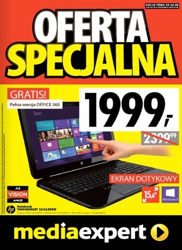 - Notebook HP TOUCHSMART 15-b155EW – 1999 zł.