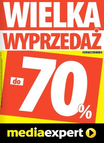 Nowa gazetka promocyjna Media Expert – „Wielka wyprzedaż do 70%”.