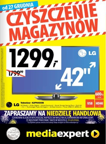 - Telewizor 42″ LG 42PN450B – 1299 zł.
