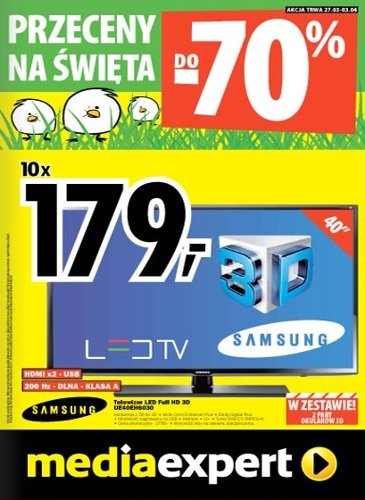 - Telewizor LED Full HD 3D SAMSUNG UE40EH6030 – 1790 zł.