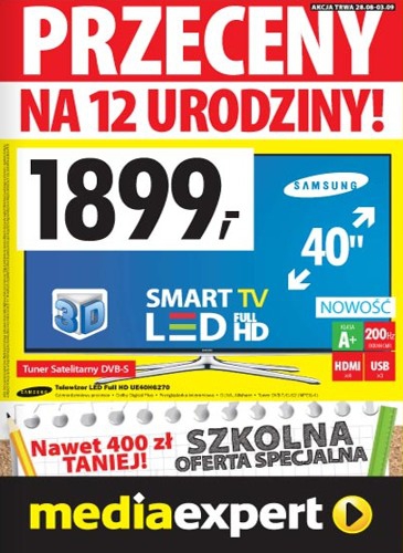 - Telewizor LED 40″ SAMSUNG UE40H6270 – 1899 zł.