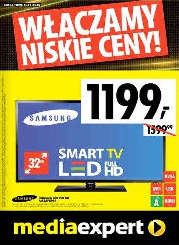 - Telewizor LED 32″ SAMSUNG UE32F5300 – 1199 zł.
