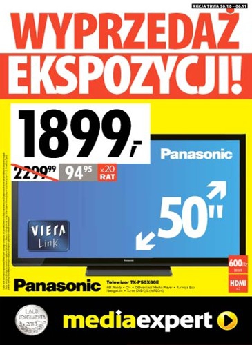 - Telewizor plazmowy 50″ PANASONIC TX-P50X60E – 1899 zł.