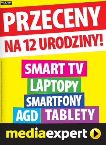 Nowa gazetka promocyjna Media Expert – „Przeceny na 12 urodziny!”.