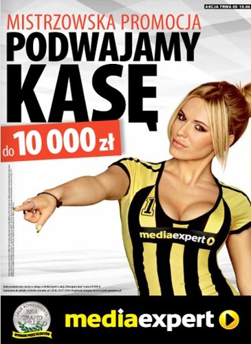 Nowa gazetka promocyjna Media Expert – „Mistrzowska promocja podwajamy kasę do 10 000 zł”.
