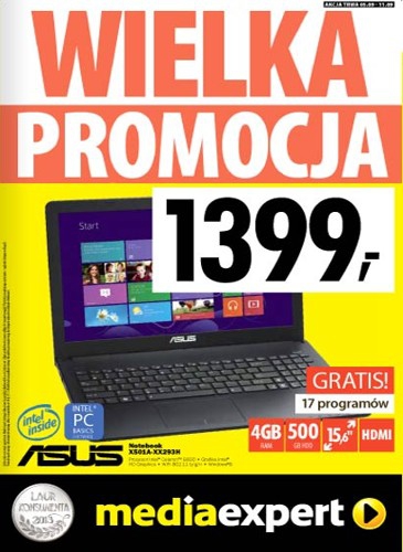 - Notebook ASUS X501A-XX293H – 1399 zł.