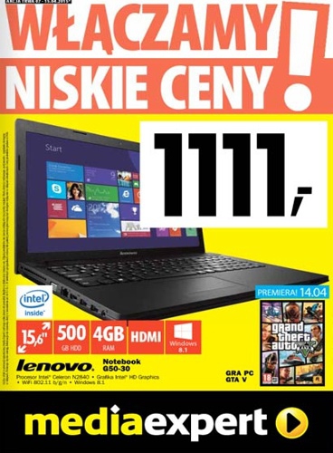 - Notebook LENOVO G50-30 – 1111 zł.