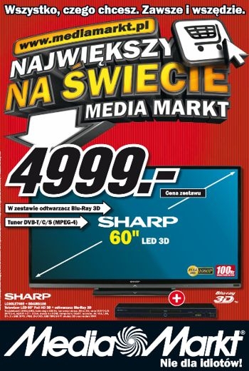 - Telewizor LED 3D 60″ SHARP LC-60LE740E – 4999 zł.