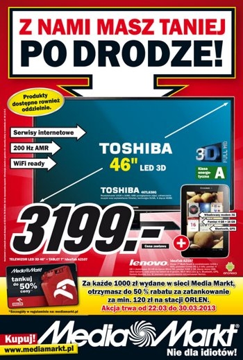 - Telewizor LED 3D TOSHIBA 46TL838 + tablet – 3199 zł.