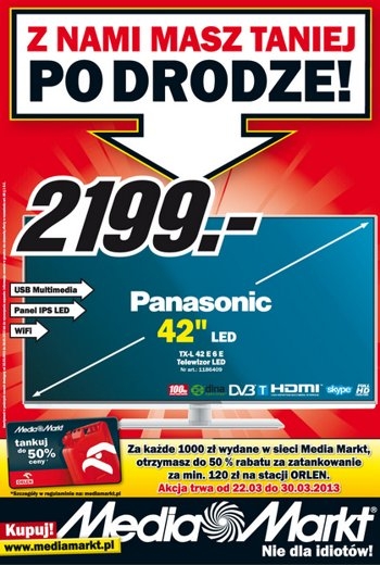 - Telewizor 42″ LED Panasonic TX-l42E6E – 2199 zł.