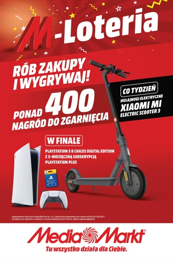 ’M-Loteria. Rób zakupy i wygrywaj. Ponad 400 nagród do zgarnięcia*’ – nowa gazetka promocyjna Media Markt.