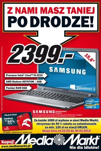- Notebook Samsung 15,6″- 2399 zł.
