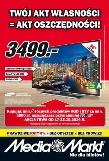 Nowa gazetka promocyjna Media Markt – „Twój akt własności = akt oszczędności!”.