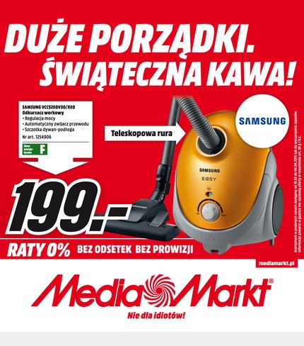 Nowa gazetka promocyjna Media Markt – „Duże porządki, świąteczna kawa!”.