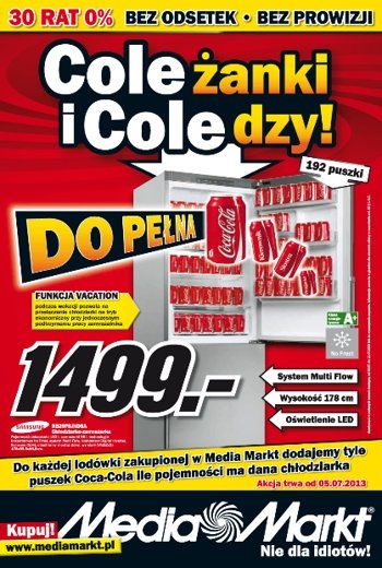 Do każdej lodówki Media Markt dodaje tyle puszek ile pojemności ma dana chłodziarka.